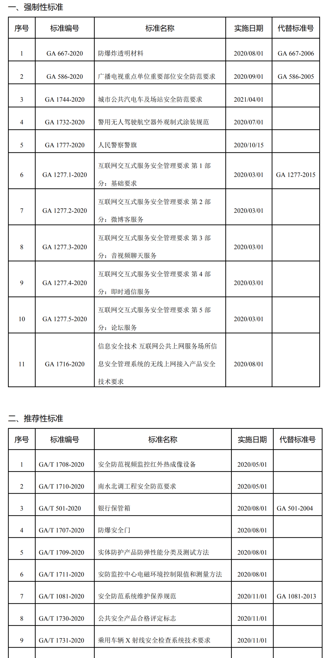 此次公布的2020年公共安全行业标准共包括11项强制性标准、105项推荐性标准与1项指导性技术文件三类。